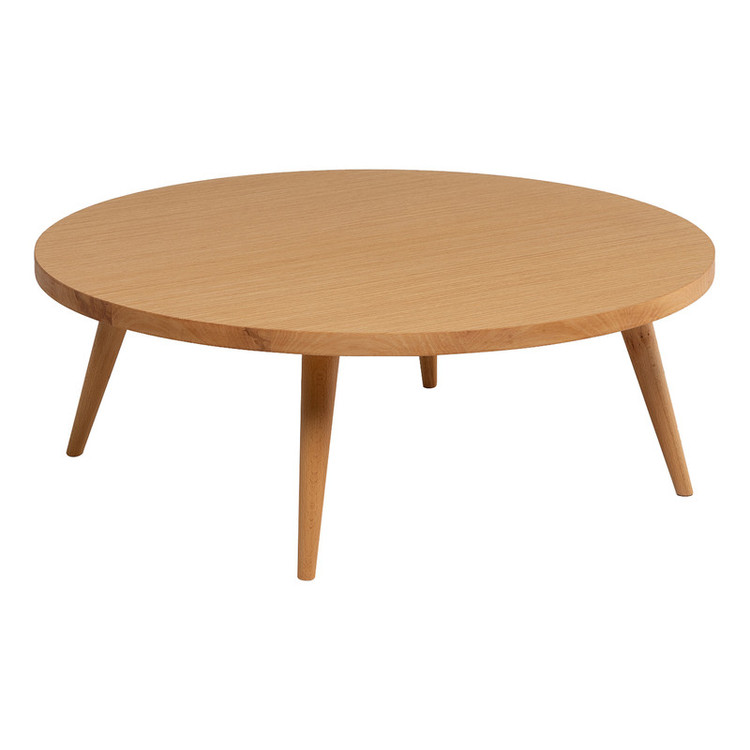 میز پذیرایی ظاهری ساده، شاخص و مدرن دارد. صفحه گرد رویی میز، به زیبایی بر چهار پایه ساده مورب نشسته است. این میز وسط گرد، سبک و بهسادگی قابل جابجایی در دکوراسیون منزل است.پایه های میز چوبی و صفحه میز ام دی اف می باشد