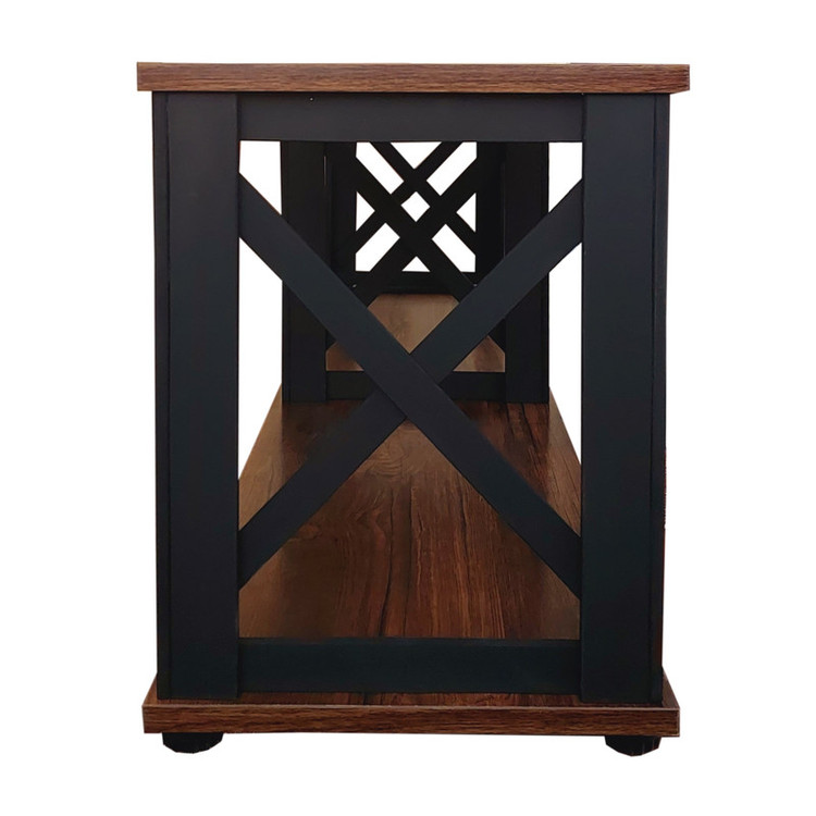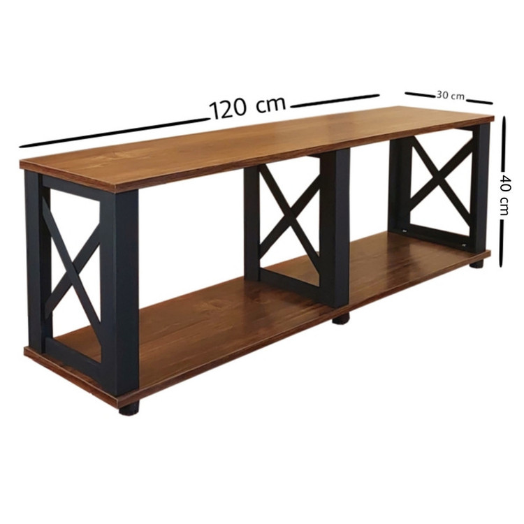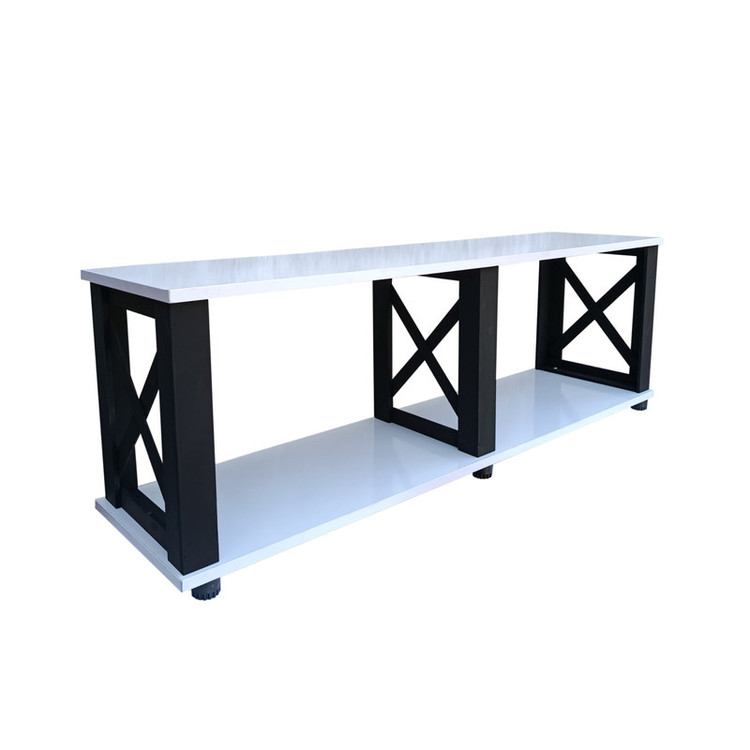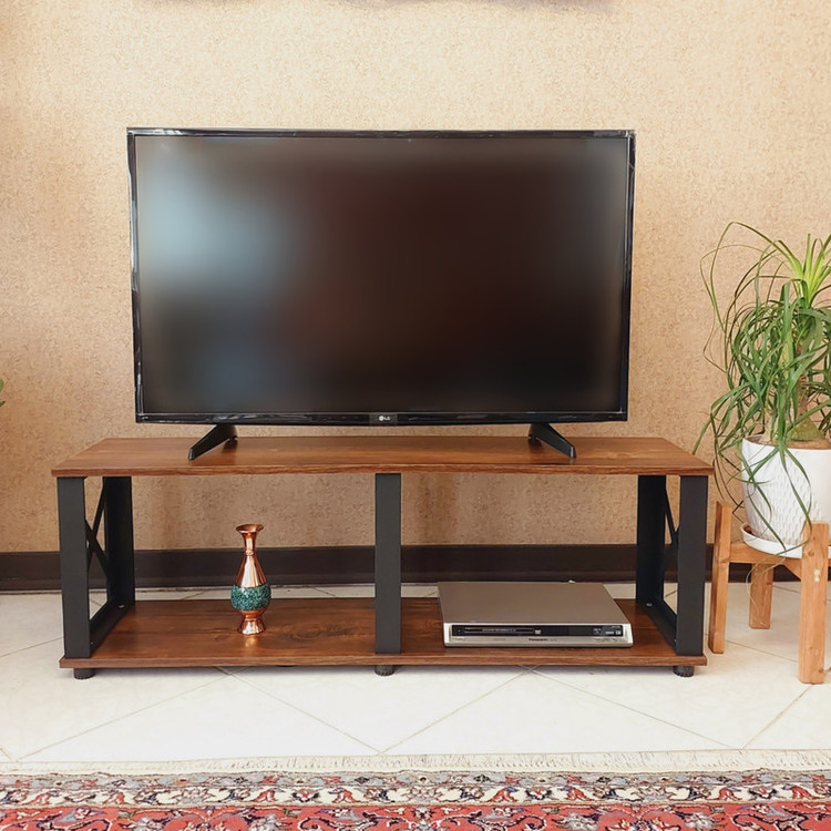 میز تلویزیون یکی از نیازهای هر خانه برای قرار گرفتن تلویزیون و وسایل مرتبط با آن بر روی آن می باشد. با توجه به فضای بزرگ طبقات زیرین این میز، از آن می توان برای قرار دادن لوازم دکوری استفاده کرد. طبقات میز از جنس ام دی اف با نوار پی وی سی است. پایه های این میز از ام دی اف خام هشت میلیمتری ساخته شده است که با رنگ اکریلیک مشکی رنگ آمیزی شده است. پایه های پلاستیکی کف میز قابلیت تراز کردن میز را می دهد.
