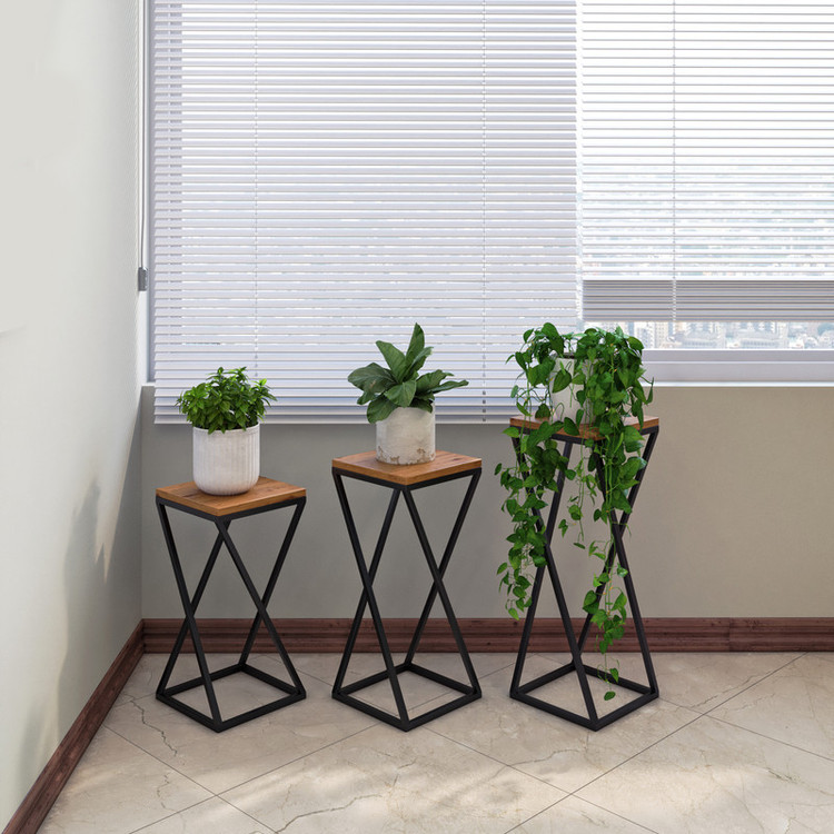 استفاده از گل و گیاه در خانه، محل کار یا هر جای دیگر به یکی از محبوب ترین لوازم جانبی برای زیبایی و تهویه مطبوع در داخل این مکان تبدیل شده است، اما ممکن است به دلیل کمبود جا قادر به چیدن همه گلدان ها نباشید. و از همه گل های خود استفاده کنید. استند گل یکی از بهترین و زیباترین راه حل هاست که می توانید متناسب با سلیقه خود از هرجایی استفاده کنید. این مجموعه سه عددی دارای پایه فلزی با رنگ الکترواستاتیک در ابعاد صفحه رویی 25x25 سانتی متر و ارتفاع آن ها به ترتیب 50 - 60 و 70 میباشد. رنگ پایه مشکی یا طلایی یا صفحه ام دی اف سفید قهوه ای ,مشکی کرم ,یا طرح سنگ یه انتخاب شما ارایه میشود